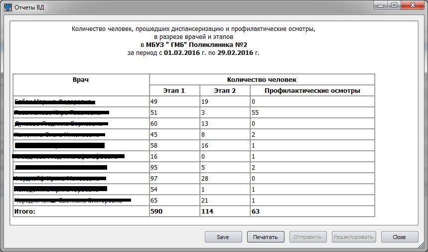 2. Количество человек, прошедших диспансеризацию и профилактические осмотры, в разрезе врачей и этапов