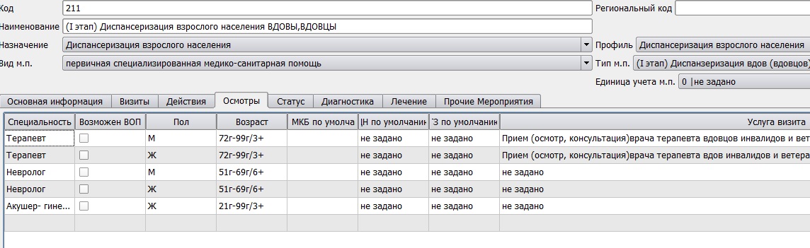 настройка события для лпу по диспансеризации вдов.