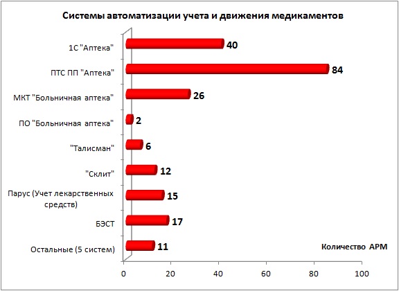Системы по выписке льготных рецептов планируется использовать больше, чем системы автоматизации внутрибольничной аптеки (по сравнению с количеством АРМ).