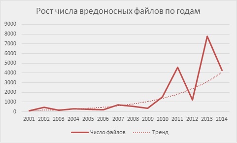 Следует отметить, что почти половина всех известных вредоносых файлов относится к классу EXPLOIT - программы, в которых содержатся данные или исполняемый код, позволяющие использовать одну или несколько уязвимостей в программном обеспечении на локальном или удаленном компьютере с заведомо вредоносной целью.