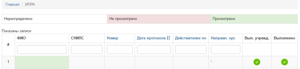 Где «Вып. Учрежд.» - красный крестик меняется на зеленую галочку, если в п.6 на каждой записи в колонке «результат» = «выполнено».