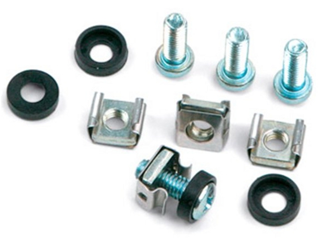 Если устройство монтируется без рельс, вставьте гайки в отверстия в стойках. После можно прикрутить устройство держа его одной рукой.