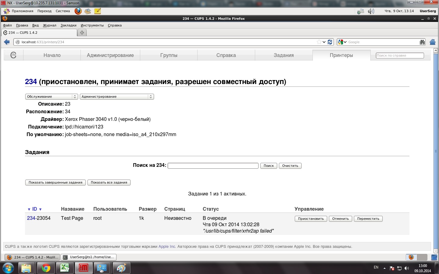 После запуска NX клиента принтер пытаемся использовать как сетевой (разве есть ещё варианты?). Принтер сам видится, но при печати получаем ошибку: xrhr2ap filed.